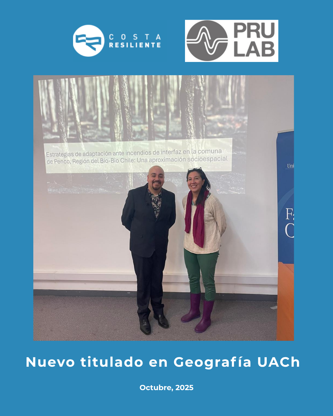 El pasado lunes 6 de octubre, Sebastián Moncada, defendió con éxito su tesis titulada: “Estrategias de adaptación ante incendios de interfaz en la comuna de Penco, Región del Bio-Bio: Una aproximación socio-espacial.”